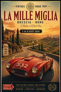 Organisées en Italie, les Mille Miglia (en français Mille Milles) étaient l'une des courses automobiles d'endurance les plus célèbres au monde. Disputé en environ 24 heures sur route ouverte, cette boucle Brescia-Rome-Brescia attira les plus grands pilotes et les marques les plus prestigieuses de l'époque. Cette course s'est disputée à vingt-quatre reprises entre 1927 et 1957 : treize fois avant la Seconde Guerre mondiale et onze fois après.